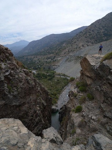 nice ride along the mendoza river to uspallata. after that i turned my handlebar west and that meant against the wind. after about 15km i decided that the winds of aprox. 50-70kmh are not only not much fun to “ride” against, it is also dangerous on a road with heavy traffic and no shoulder. (the wind blew me of the road a couple times, but the wind gusts after a bus or truck made it unpredictable. that´s how i met veronica from mendoza, who was so kind to give me a ride to puente del inca.)